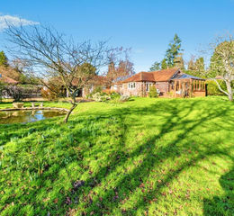 A unique character cottage bungalow within the village of Lyndhurst that offers much scope and versatile living set in formal gardens and paddock with approximately two acres of land. The spacious home offers 4/5 well proportioned bedrooms serviced by a family bathroom and a separate shower room. The a bright and airy living/dining room has a beamed ceiling, feature brick fireplace housing the log burner, and double doors to a conservatory overlooking the grounds. A cottage style kitchen/breakfast room has a range of units, gas fired Rayburn and electric hob.