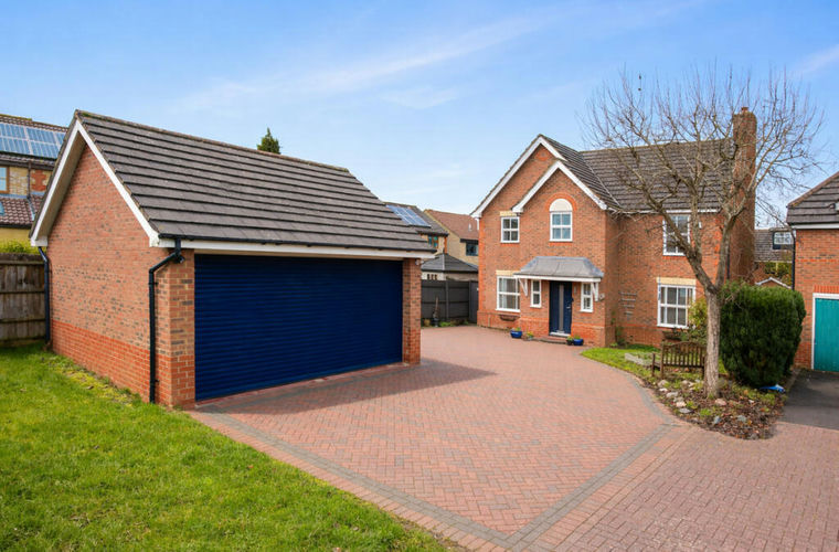 At the front of the home, there is a detached double garage, an EV charger and parking for up to five cars.