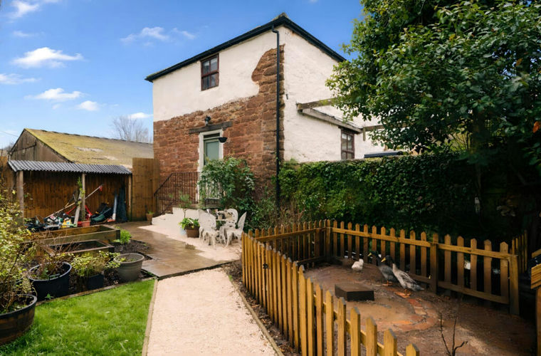 The garden wraps around the front and side of the property and is fully enclosed, creating a private and usable outdoor space. Predominantly laid to patio and gravel, it is designed for low maintenance while still offering areas for planting, entertaining and dining outside. There is a dedicated seating area ideal for summer evenings and a more playful, informal section with raised beds and feature details, giving the garden real personality and charm.