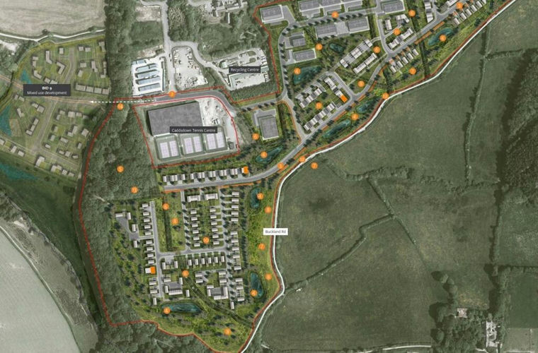 The employment element of the scheme is to be accessed from Caddesdown trading estate and will adjoin the Atlantic Racquet Centre.