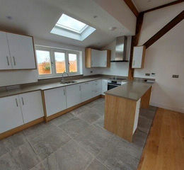 The kitchen/dining room (24’2” x 13’4”) is fully fitted with floor and wall cupboards together with a one and a half bowl sink unit and work surfaces. Built in appliances include oven, hob, extractor, dishwasher and washing machine. There is a door to outside, a window overlooks the rear garden, there is also a Velux roof window and exposed timbers, it has a 10’9” ceiling height. Off the kitchen/dining area is a rear hallway which provides access to a cloakroom fitted with a white suite of a low level WC and wash basin. Bedroom two (13’3” x 11’4”) and bedroom three (12’3” x 9’4”) both have windows to the front. The shower room is fitted with a white which comprises shower cubicle, low level WC and a wash basin. It has a window to the rear.