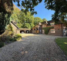 Welcome to Picket Lodge, an exquisite high-specification detached residence located in the enchanting Picket Hill area of Ringwood, within the stunning New Forest National Park. This remarkable family home is set within approximately two acres of beautifully maintained grounds, offering a serene retreat surrounded by nature's splendour. Picket Lodge is approached via electronic gates opening onto a gravel driveway lined with copper beech trees. The generous grounds provide ample parking, along with a double garage and double carport