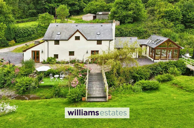 Video Tour Available... Offered for sale, a well presented four bedroom, characterful detached converted Watermill. Nestled into the hillside with truly stunning views of the countryside, it is in approximately 9 acres of land with outbuildings on the edge of the village of Nantglyn. The property comprises of Kitchen/ breakfast room, utility and downstairs cloakroom, large living room and dining area, study/activities room, bright airy oak framed conservatory, four bedrooms to the first floor and family bathroom. Externally, the property offers off road parking for several cars, outbuildings for ample storage space, two bay garage and workshop, 5 stables, hay storage, additional outbuildings, wooded Mill lete trail , stream, rock pools, & three fields and small paddock. Nantglyn is a small rural village community situated in a picturesque valley setting some 5 miles from the market town of Denbigh. Denbigh provides a good range of facilities catering for most daily requirements to include supermarkets, post office, schools and leisure facilities. The area is also considered ideal for those wishing to commute throughout the region with the A55 Expressway within easy reach providing ease of access along the North Wales Coast and interlinking with the motorway network beyond. Viewing highly recommended. EPC Rating C69.