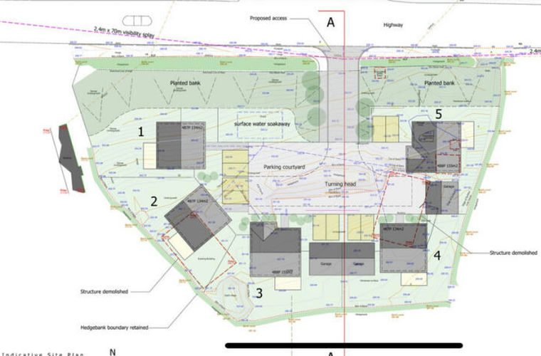 The indicative plan submitted to the planning department shower 3 houses of 134m2 and 2 of 155m2.