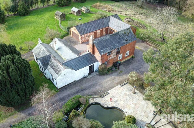 Outside, the property enjoys a beautiful block-paved courtyard surrounded by an extensive range of outbuildings, including multiple garages and useful storage sheds. A sweeping driveway wraps around the home, providing ample offroad parking for numerous vehicles. Beyond, the grounds extend to four acres of mature gardens, featuring a variety of established trees, shrubs, and a large picturesque patio area with fish pond.