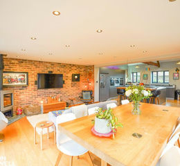 The residence features a spacious high specification kitchen/living/diner, designed to provide a practical and welcoming environment for family meals and entertaining guests. Large aluminium windows, recently installed, maximise natural light throughout the property, enhancing the sense of space and spotlighting the balance between the building's heritage and its sophisticated updates. The interior layout is complemented by three versatile public rooms, providing ample space for relaxation, dining, and flexible family living.