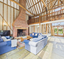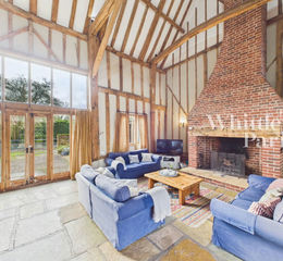Manor Farm Barns is a stunning example of classic timber-framed barn conversion, dating back to the 1700s and being of massive oak timber-frame construction, with colour washed rendered elevations under a pitched clay pantile roof. The building originally formed part of a larger estate, and was converted into residential accommodation in the 1990s and has formerly been run as a successful holiday let. The barn is now a Grade II listed building, noted for its historical importance. During the conversion, great care and attention to detail was undertaken during the renovation to retain much of the character and history, with all of the oak timbers and frame being preserved. Few barn conversions can execute workable living space, but this conversion is an exception, offering a show-stopping grand first impression with high vaulted ceilings creating a striking entrance, whilst having a good deal of versatile living spaces separated off the main hall.