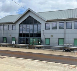 The main entrance to the site is via a vehicular entrance with gated entrance that is suitable for larger vehicles and it leads to an internal access road serving all parts. Immediately on the left of the entrance is a two storey office building with secure parking area in front. The offices are arranged to a provide a mix of open plan and cellular suites with a secure reception, kitchen and WC facilities.