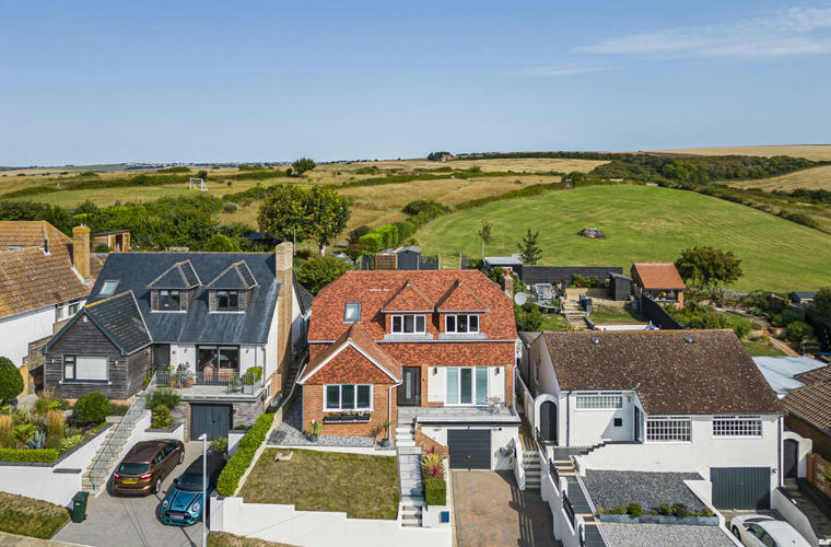 Situated in an elevated position, enjoying some of the best panoramic sea and downland views in the area, this rarely available, impressive family residence has been modernised to a very high standard and boasts three/four bedrooms, three bathrooms and a fabulous open plan living/kitchen/dining room and an extended rear garden again with amazing panoramic views.