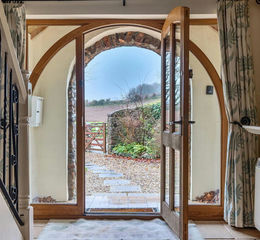 Entry to the spacious hallway of the house is through an impressive oak framed glass front door. From the hall, double glazed oak doors lead into a fully equipped kitchen and breakfast area and a utility room/bootroom with an additional external door to the front of the property. Leading from the hallway there is a formal dining area currently furnished with a 10 seater dining/pool table. In the living room, French doors allow natural light to fill the room and open into the garden, creating an indoor outdoor feel. An additional library/study provides further versatile space. There is a downstairs w/c by the front door and a large lockable storage cupboard under the stairs