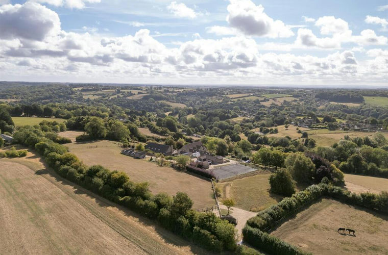 Tucked away in complete privacy, this home is defined by its breathtaking setting. Peaceful and secluded, it sits at the end of a long, winding track which meanders through open fields before arriving at the house, where the world seems to slow down. Here, life revolves around the land. Mature gardens wrap the home in beauty throughout the seasons — from specimen trees and flowering shrubs to open lawns and a small orchard. To the south, a sun-drenched deck with hot tub invites long evenings under the stars, while a choice of seating areas offers perfect spots to soak in the views. A tennis court is discreetly hidden among the trees, ready for an afternoon match. There are various outbuildings — the largest a versatile workshop and store, complete with a purpose-built wine cellar, ideal for the wine enthusiast! For those with equestrian or country pursuits, the land is thoughtfully arranged. Stock-proof paddocks with field shelters, stabling, tack and feed rooms, as well as areas of woodland, rough pasture, and lush grazing create a haven for animals and outdoor living alike. With multiple access points, practicality is built into the charm.