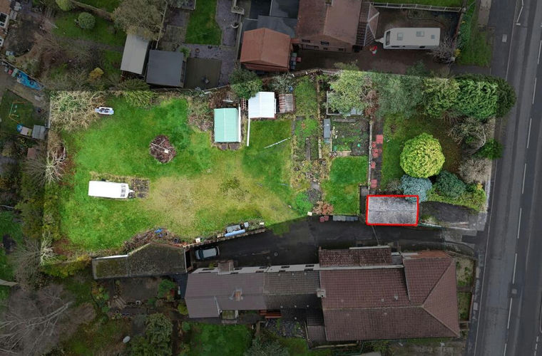 Purchasers must be aware that to facilitate proper access to the site, they will be responsible for the demolition, relocation and complete rebuilding of the existing marked garage structure (highlighted on the aerial photograph). Furthermore, the proposed plot is currently held across two separate legal titles, meaning the sale will require two parallel conveyancing processes to complete the transfer of ownership.
