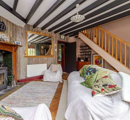 Oak engineered flooring, radiator, exposed ceiling timbers, original 'Coalbrookdale' range cooker.