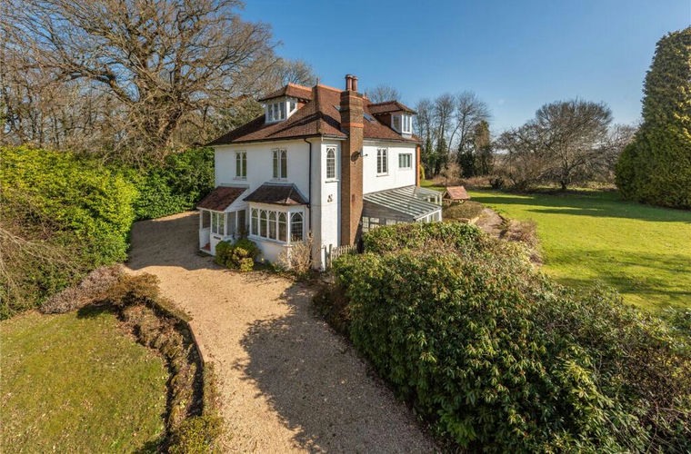 Vann Cottage is a most impressive and attractive detached, late Victorian family home, occupying a commanding and delightfully unspoilt rural location with wonderful established grounds. Vann Cottage is ideal for a family with well-proportioned and versatile accommodation, which is arranged over three floors and the majority of the rooms enjoy delightful views across the garden and surrounding countryside. The accommodation briefly comprises a reception hall, cloakroom and a charming sitting room with a wood burning stove and delightful original casement windows. The sitting room extends through to a dining area and also a conservatory – which is now in need of modernisation. The kitchen/breakfast room is positioned to the rear of the property and has access to a utility room. To the first floor, there is a substantial main bedroom with en-suite bathroom, and a further bedroom served by a family bathroom and a study area. The second floor, has been intelligently converted, by the current owner, to provide two further spacious bedrooms and a shower room. We understand the property benefits from current planning permission granted for further substantial extensions to further enlarge the property. Outside the gardens are a prime feature of Vann Cottage, enjoying a southerly aspect and an excellent degree of privacy, consisting of broad sweeping lawns, a variety of established shrubs, flower beds and borders, specimen trees including copper beech, lime, mature oaks together with a light wooded area to the rear of the plot. There is a detached garden store and adjacent workshop. The property is approached across a gravel driveway leading to a parking area. In all, the grounds extend to about 1.28 acres.