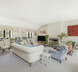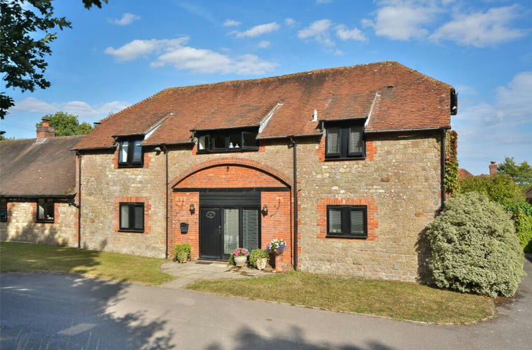 Occupying a delightful elevated setting on the edge of Pulborough, this outstanding, partly attached period conversion forms part of a group of period farm buildings off a long private drive. The property offers bright and airy accommodation including an impressive vaulted sitting room, a large dining room, vaulted study , 4 double bedrooms and 3 bathrooms. There is a double garage with a useful artist’s studio over and a charming plot comprising courtyards with a separate garden and pond with far reaching views over fields towards the South downs.