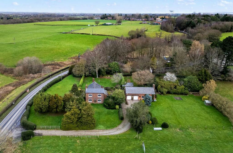 A characterful farmhouse and detached outbuildings situated in generous gardens and grounds on the outskirts of Holmes Chapel.