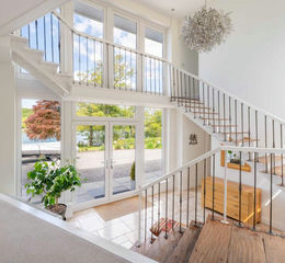 - Grand and elegant, double height reception hallway with modern angular staircase
