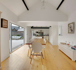 Oak flooring continues throughout and oak doors provide access to the sitting room, reception two, downstairs WC and a large opening into the kitchen/living/family room. Further door providing access to the side garden.