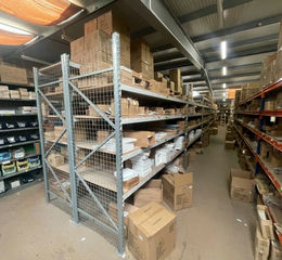 Electric roller shutter door with a height 5.05m and width of 4.97m leading onto a separate concrete yard area. Eave height under the mezzanine of 2.59m. Reznor gas warm air blower. Windows to front and metal security pedestrian door.