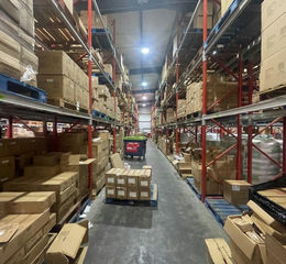 Warehousing of 33.64m x 29.45m with low bay sodium lighting, Reznor gas warm air blowers, concrete floor and a max eave height of 5.74m and min of 7.56m.