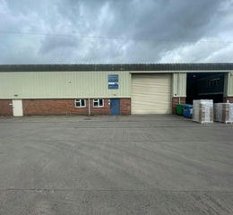 Electric roller shutter door with a height 5.05m and width of 4.97m leading onto a separate concrete yard area. Eave height under the mezzanine of 2.59m. Reznor gas warm air blower. Windows to front and metal security pedestrian door.