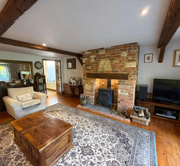 The heart of the home is the striking kitchen/dining room, where a vaulted ceiling and full-height arched glazing create a wonderfully light and welcoming space. The separate sitting room, complete with exposed beams and a wood-burning stove, offers a cosy yet spacious retreat. A downstairs WC completes the ground floor.