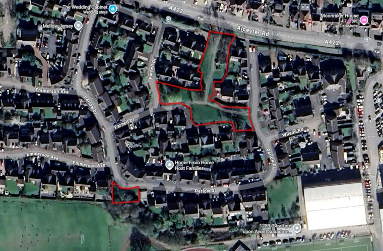 - Land comprises mostly amenity land and trees within an irregular shaped areas.