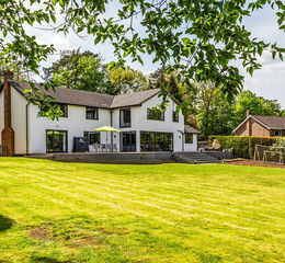 Set on a lovely wide plot of just under 1 ACRE, this bright and airy 5 DOUBLE BEDROOM contemporary styled home offers over 3,750 sq.ft. (plus garage) of remodelled modernised space. The accommodation layout has been carefully planned; all the rooms are spacious. The 'hub' of the home features a superb open plan kitchen/dining family room which has double aspect bifold doors onto a fantastic terrace - ideal for 'al fresco' dining. The principal bedroom features a large walk-in wardrobe space complemented by a luxurious ensuite bathroom whilst the 4 remaining bedrooms are served by a further ensuite and family bathroom.