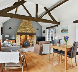 Sitting/Dining Room - with vaulted ceiling, feature fireplace with wood burning stove, two French doors to garden, engineered oak floor.
