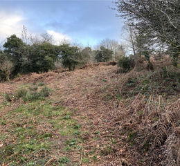 The land is mainly sloping and sits to the side and rear of the building and is somewhat overgrown at present. A mixture of hedge bank and post and wire fencing form the boundaries.