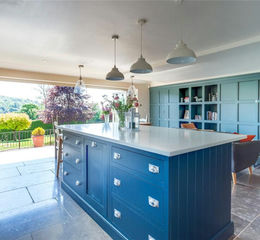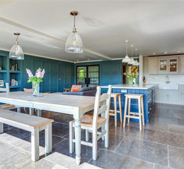 - Show-stopping open-plan kitchen/dining/family room with hand painted kitchen units by Handmade Kitchens of Christchurch with Bianca Carrera Corestone Quartz worktops.