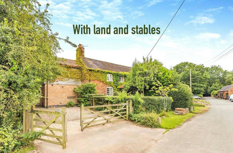 Externally, a gated gravelled driveway provides ample parking and side access to the garden, stables and paddock. The pretty rear garden includes a large paved patio sitting area, lawn and mature trees and shrubs.