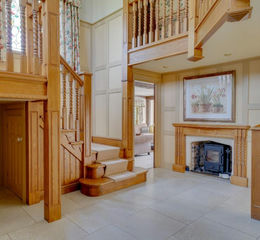 The generous and meticulously presented accommodation features an impressive full height entrance hall with bespoke oak staircase and welcoming wood burning stove, leading on to the cozy sitting room with inglenook fireplace and views towards the heated swiming pool and sun terrace. The snooker room complete with bar is perfect for enjoying evenings with friends but can be transformed to play host to the christmas banquet. The family room is the heart of this wonderful family home and opens to the rear gardens, the garden room and of course, to the bespoke country style kitchen with generous central island. The utility and downstairs cloakroom are also close by completing the ground floor accommodation.