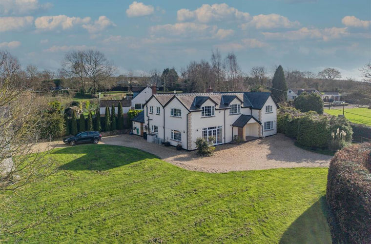 Set within approximately two acres of beautifully maintained grounds, this elegant and stylish five-bedroom country house offers substantial, well-proportioned accommodation in an idyllic rural setting. Enjoying far-reaching westerly views across unspoilt countryside, the property is approached via a sweeping gated driveway, creating an impressive sense of arrival and privacy.