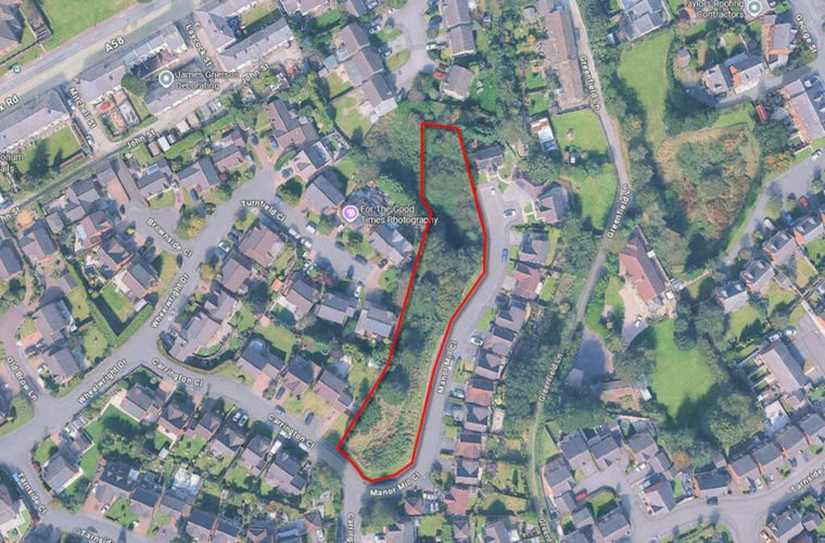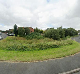 - Land comprises mostly amenity land and trees within an irregular shaped area.