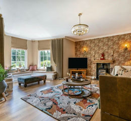 Sitting Room Another grand reception room with a sunny aspect, having two windows overlooking the garden. Oak-effect luxury vinyl tiled floor, useful serving hatch through to kitchen, with the space seamlessly flowing through to the hallway and lounge via double oak doors, together with further double oak doors to the opposite end, giving access to the rear lobby and rear staircase.