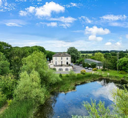 The property spans 1.4 acres and boasts a range of attractive features. Among these are a scenic lake teaming with fish and other wildlife, surrounded by lush vegetation, a large car park, and a squash court currently leased to a local squash club until 2026. The terrace offers breath-taking views of the surrounding countryside, making it an idyllic location for future residents.