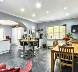 Arguably the room you will find yourselves spending the most time in! Spacious with dual aspect windows and a door leading to the conservatory. Extensive fitted kitchen with built-in appliances, a breakfast bar and kitchen island.