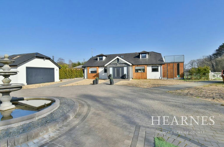 This rarely available and superbly positioned detached country residence currently offers three bedrooms (with an additional four bedrooms within the converted garage and three lodges), two bathrooms, two reception rooms, an indoor plunge pool with retractable roof, three detached guest lodges, a converted detached double garage creating a studio, impressive carriage front driveway, with gardens and grounds measuring in excess of 2.5 acres.