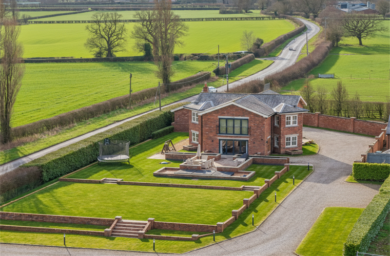 Bespoke-built by the current owner to an exacting standard and set amidst the rolling Cheshire countryside, this exceptional family residence combines striking design with luxurious, flexible living. Extending to over 2.3 acres, the property is approached via electric gates and a sweeping driveway, culminating in a detached triple garage and generous parking.