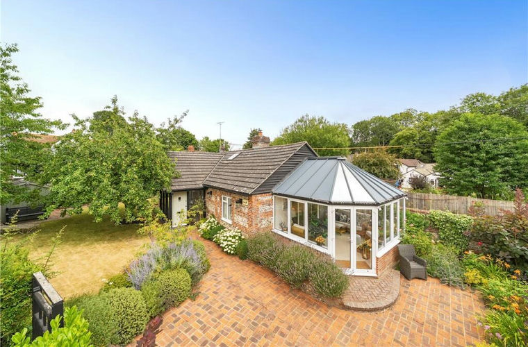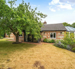 This delightful property is a lovingly converted barn, with the work having been carried out to a high standard by the current owner. Featuring highly adaptable accommodation and mainly lateral living space, it has been thoughtfully refurbished and modernised to provide a bright and well-balanced layout. The entrance hall provides a very welcoming space, with floor to ceiling glazed wall, tiled floor and a bespoke timber staircase. Double doors from the hall lead into a charming sitting room. With vaulted beamed ceiling, fitted bookcases, exposed brick chimney breast, and log burner. In turn, this room leads onto a delightful orangery with a wonderful aspect across the front garden. The kitchen / dining room is a particular feature of the property and is an excellent entertaining space. A range of bespoke solid wood painted units are fitted along a feature brick wall, with a substantial island unit providing further storage space. The kitchen is fitted with a range of integrated appliances along with a double width stainless steel fridge and range cooker. This area, with its vaulted ceiling and bifold doors onto the rear garden, represents the heart of the house and a very sociable cooking and dining space. A utility room gives access to the rear garden. The ground floor is completed by two double bedrooms, both of which have en suite bathrooms and ample built in wardrobe space. A study / guest room on the first floor is accessed via the landing and has ample eaves storage.