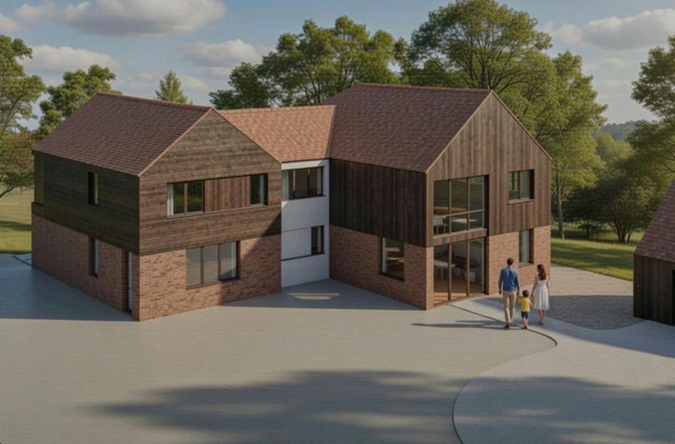 This rare and exciting opportunity offers the chance to build a luxurious new home on a generous 0.6-acre plot, with Full planning permission (UTT/24/2606/DFO), granted in December 2024, allows for the creation of a striking residence combining traditional craftsmanship with contemporary design. The proposed house extends to around 300m² (3,230 sq ft) of thoughtfully designed living space, blending handmade red multi-facing brickwork, dark timber cladding and expansive aluminium-framed glazing. The result is a home that not only sits comfortably within its semi-rural surroundings but also maximises light and the far-reaching countryside views to the rear.