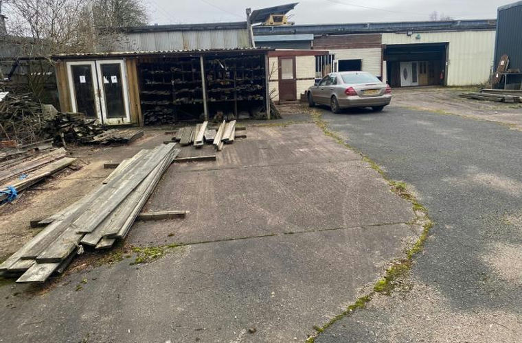 A secure (fenced and gated) parcel of land part covered at present with a range of timber framed single storey buildings.