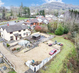 Steps lead down to the front door with a path leading around the property with stock borders before opening out to a patio and gravelled seating area. The is also vehicle access to a lower parking area with timber garden shed and a storage shed.