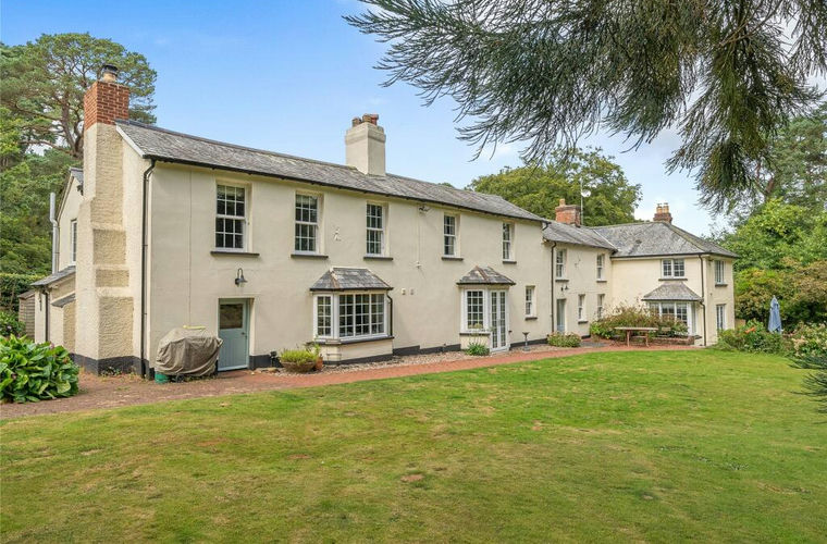 Elegant Georgian link-detached home three miles from the Woodbury village and the golf course. Beautifully modernised, it retains charming character features and offers spacious accommodation with six bedrooms, four reception rooms, a kitchen/breakfast room, two utility rooms and three bathrooms. Set within approx. 3.2 acres of gardens, woodland & a tennis court.