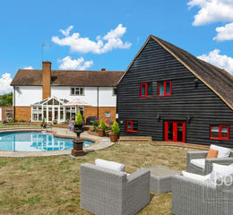 A most charming and characterful four bedroom home, occupying a corner plot circa 0.47 acres, including an 1800 century converted barn, with many potential useages ideal for business use, studio, exhibition hall, gymnasium to name just a few. The property enjoys well maintained landscaped gardens, heated outdoor swimming pool, patio terrace and long driveway with a generous parking area and double garage with remote operated doors.