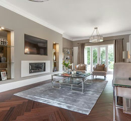 The setting and grounds to the house are a major feature and extend to almost one acre in size. Electric gates lead to a large driveway and the triple garaging. The rear garden is westerly facing with a stunning outlook to Oxshott Heath with the added benefit of a private gate leading directly out in to the Heath. The large terrace across the rear of the property is the perfect setting for al fresco dining and those with children will appreciate the options for a pitch to suit their preferred sport. With a garden of this scale, the irrigation system is a significant help, there is also an outbuilding that is currently being transformed in to an office/studio, ideal for yoga or for those working from home.