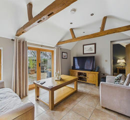 Sitting Room - 3.29m x 4.46m (10'9" x 14'7" ) - Front facing windows and double doors opening to garden, exposed ceiling timbers, tiled floor with underfloor heating, spotlighting, television and broadband points.