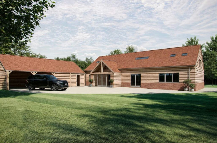 The proposed dwelling includes a phenomenal first-floor principal suite with walk-in wardrobe and en suite bathroom, plus two generous ground floor double bedrooms, each with its own en suite shower rooms. The open-plan kitchen, dining and family space is designed to impress, with sliding pocket doors creating a flexible flow into the vaulted living room and out to the garden via double doors. A large reception hall, utility room, downstairs WC and first-floor study/ occasional bedroom complete the internal layout.