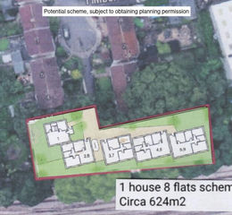 - Indicative Residential Schemes have been prepared by the seller. Two high quality Schemes of between 460 sq m-624 sq m show potential for 4-6 Houses, or 8 Flats, plus 1 House, subject to consents